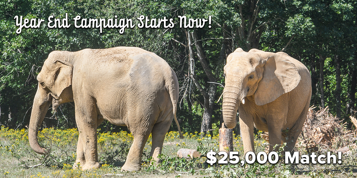 To kick off our 2025 Year End Campaign, a generous supporter has pledged a $25,000 matching gift, doubling every donation made today. Your gift will go twice as far to provide nutritious food, veterinary care, enrichment, and refuge for elephants who call The Sanctuary home—Artie, Edie, Flora, Mikki, Nosey, Osh, Sukari, Tange, Billie, Debbie, Minnie, Punch, Ronnie, and Sissy—and for those who will join us in the years ahead.