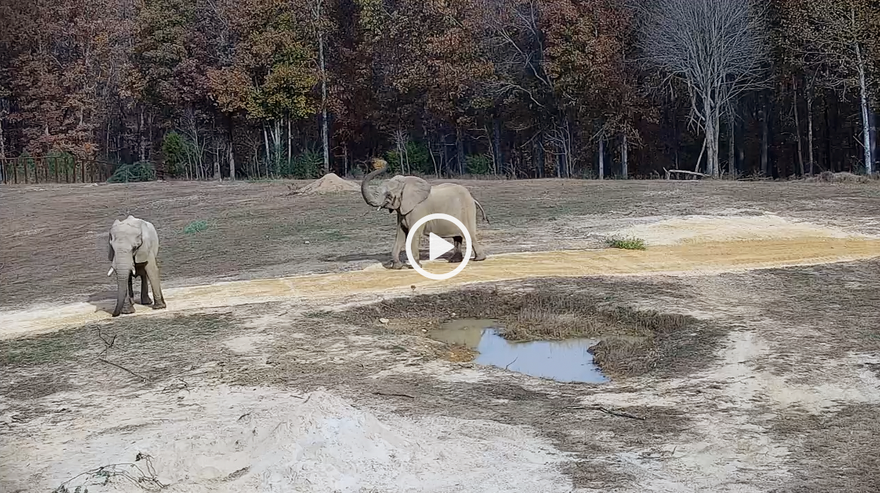 Care Staff at Hickory Habitat are pleased to share that the relationship between African female Edie, who arrived in 2023 from Knoxville Zoo, and African female Mikki, who joined The Sanctuary in 2025 from Louisville Zoo, is growing in positive ways. The two elephants have been choosing to share space frequently, both inside the barn and throughout the habitat.