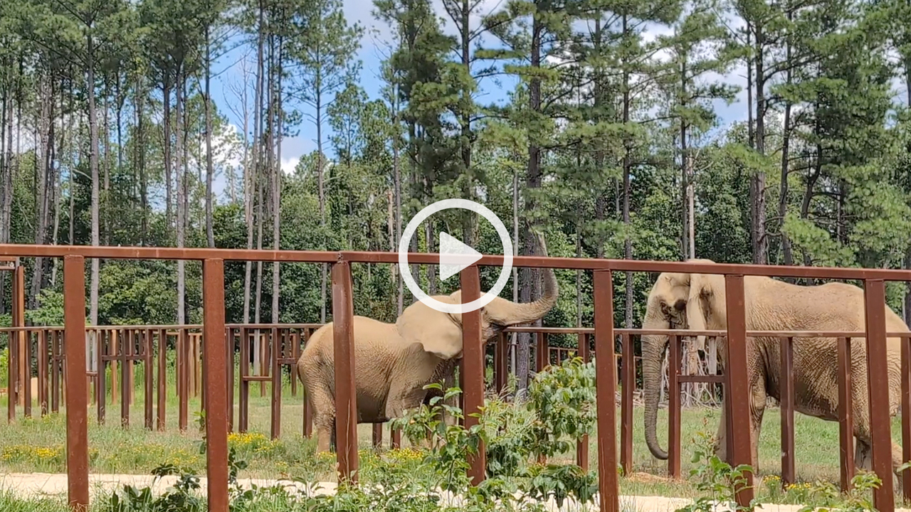 This season brought exciting new introductions and important healthcare milestones for the elephants at The Sanctuary. Mikki was introduced to both Artie and Osh across protected barriers. The first meeting was with Artie, who is known for being especially social with females. True to form, Mikki showed confidence from the start—approaching quickly with ears wide and dirt flying. The two immediately engaged in natural sparring behaviors, intertwining trunks and pushing against one another over the fence. Care Staff observed this as a healthy, expected interaction between African elephants establishing boundaries and testing strength.
