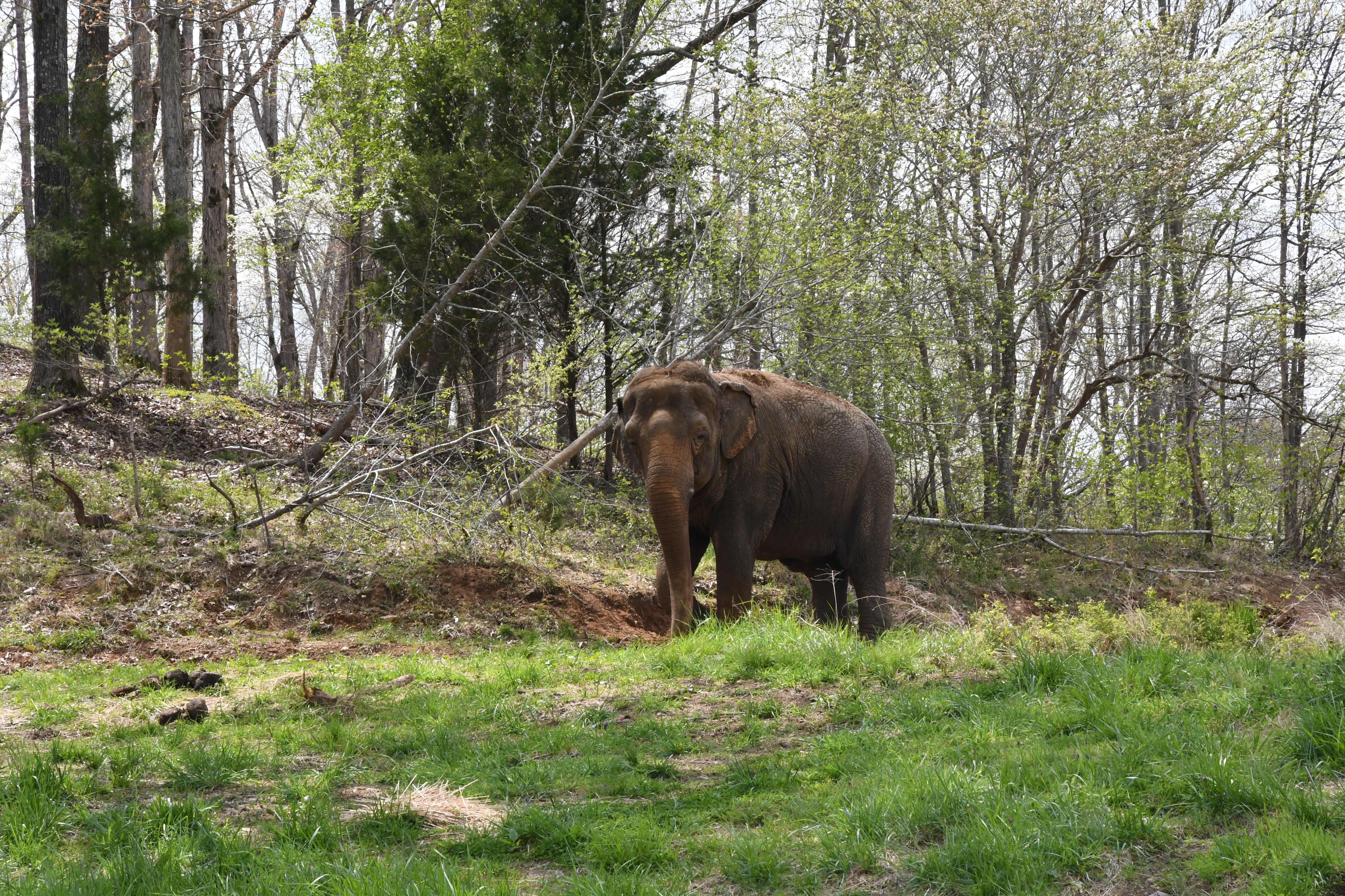 Nosey is learning new behaviors very quickly as she continues to make progress in Protected Contact training. She is spending much time each day tasting all the new spring grasses as she explores all areas of her habitat.